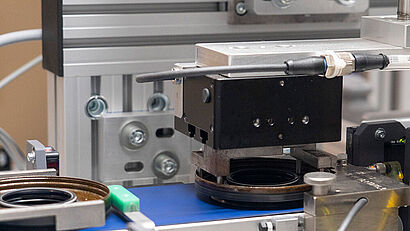 Für die Wahl des richtigen Greifers wandte man sich an den Automatisierungsspezialisten Zimmer Group, da hier bereits eine lange und erfolgreiche Zusammenarbeit besteht. Die Anforderungen an den Greifer waren klar definiert: Er muss in der Lage sein, Radialwellendichtringe mit verschiedenen Maßen zu handhaben und parametrierbare Hubeinstellungen ermöglichen. Pneumatische Greifer, die stets komplett öffnen, waren nicht praktikabel. Zudem war nur ein Innengreifer möglich, da die Gummibeschichtung der Werkstücke nicht beschädigt werden durfte.