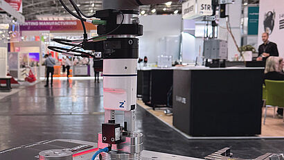 Für die Handhabung der Bauteile wurden Greiferlösungen der Zimmer Group integriert. Der HRC-Greifer der Serie HRC-03 sorgt dafür, dass Pick-and-Place-Aufgaben nicht nur präzise, sondern auch besonders effizient ablaufen. Sein Absolutmessgeber macht eine Referenzfahrt überflüssig und spart dadurch Zeit, gerade wenn Werkzeuge häufig gewechselt werden. Ergänzt wird er durch einen Dreibackengreifer der Serie GPD5000, der speziell für runde Bauteile ausgelegt ist und so die nötige Wiederholgenauigkeit beim Spannen sicherstellt.