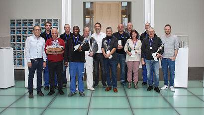 Im Mittelpunkt beider Feiern stand in diesem Jahr die Ehrung von 64 Betriebsjubilaren, die es in diesem Jahr zusammen auf die beachtliche Summe von 885 geleisteten Arbeitsjahren brachten. Als erster Mitarbeiter konnte hier Klaus Seifried, Leitung Produktion, sein 35-jähriges Betriebsjubiläum feiern. Neben den persönlichen Dankesworten konnten die Jubilare ein Geschenk und eine Medaille aus den Händen der sogenannten „next generation“ entgegen nehmen. Nach einem großzügigen Büffet spielte im Anschluss bei beiden Feiern die Band „Amy Sue & Friends“ und heizte so die ohnehin sehr gute Stimmung bei der Mitarbeiterschaft weiter an.