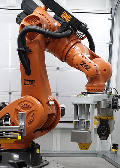 The heavy-duty EOAT combines the robustness of classic industrial automation with the flexibility and process proximity of an HRC application. Only a specially designed gripping concept enables standard industrial robots with high payloads to use heavy cast components safely and economically in the immediate operator environment.