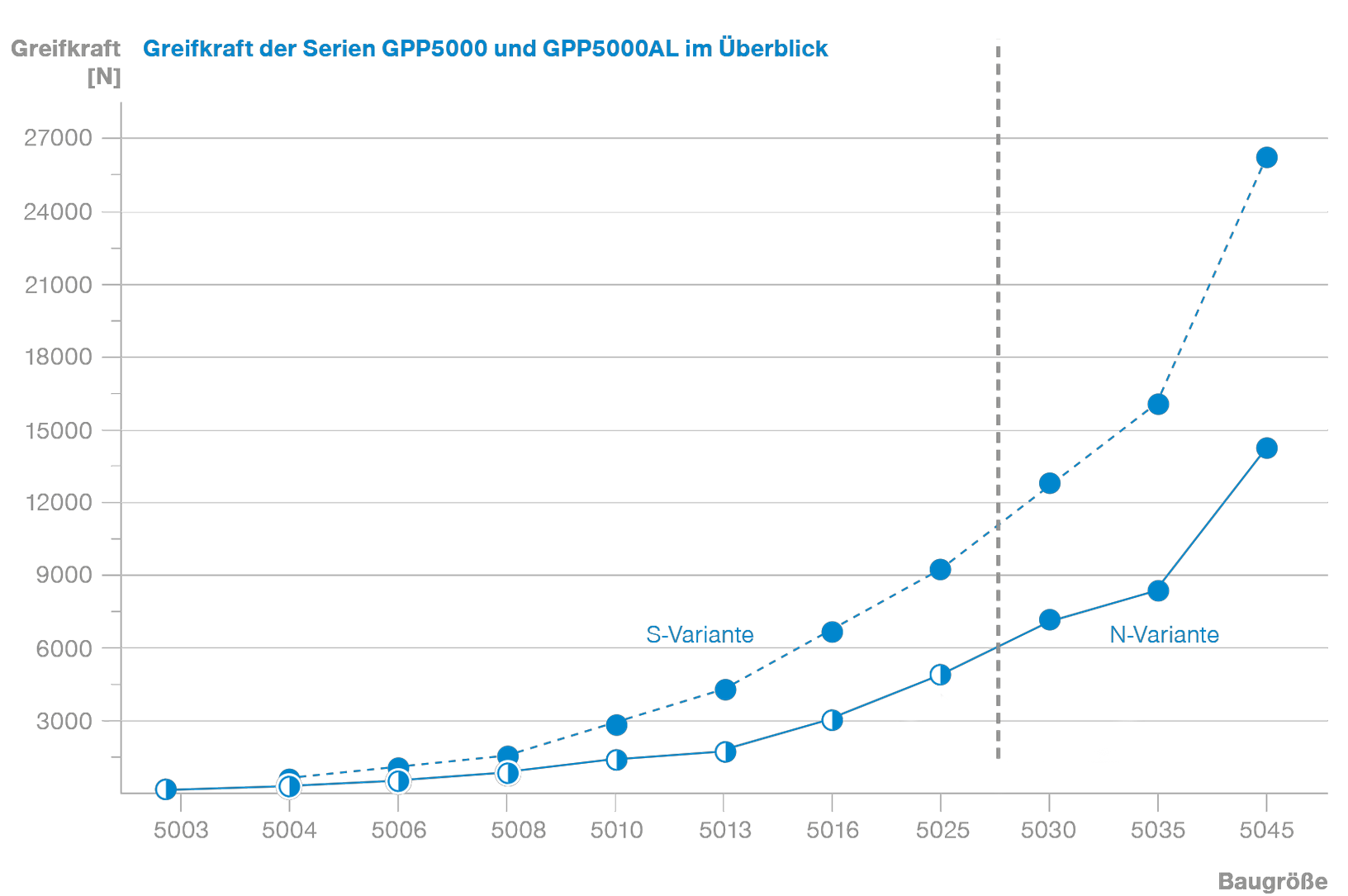 Our multi-award-winning premium pneumatic grippers from Series GPP5000 and GPD5000 with the extremely robust steel-on-steel profile slot guide are designed for universal use and provide an outstanding high functional reliability and durability. Fast, precise and with high gripping forces, they offer the right solution for every application!