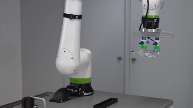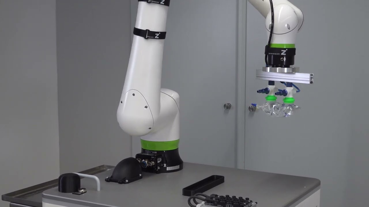 Système de préhension pour poches médicales souples, permettant une prise stable pour l'alimentation, l'emballage ou la préparation de commandes, même en cas de formes souples et changeantes.