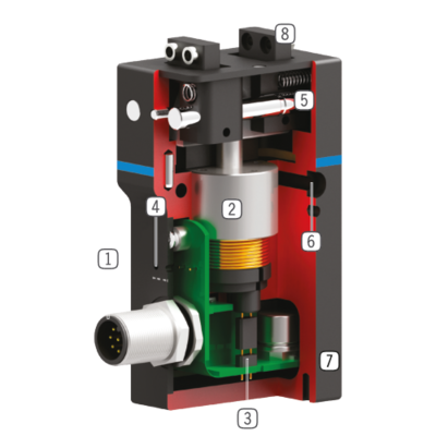mediante pot magnete e bobina secondo il principio della bobina mobile consumo di corrente solo con impulso per apertura e chiusura (<25ms) - Rilevamento della posizione