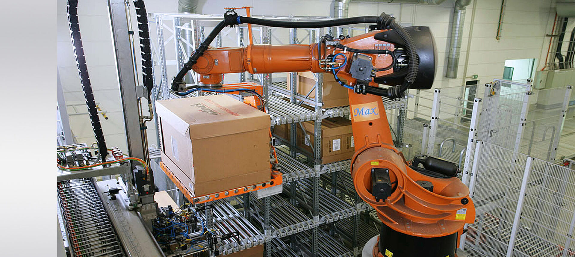 I processi logistici oggi sono sempre più veloci. Molte aziende stanno quindi pensando di automatizzare uno o più processi. Scoprite subito i più diversi esempi di applicazione nel nostro System Showroom. Dalla tecnologia di pallettizzazione e depallettizzazione alla combinazione di soluzioni hardware e software personalizzate per una facile integrazione in infrastrutture logistiche esistenti o pianificate.