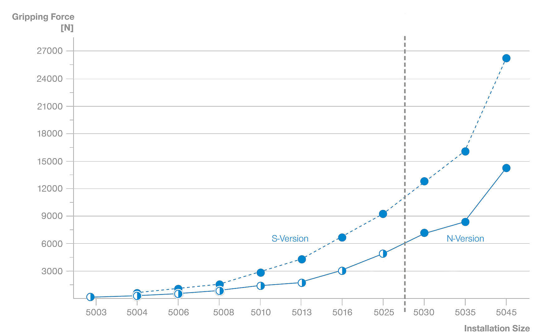 Modele chwytaków obejmują 2-szczękowe chwytaki równoległe z serii pneumatycznej GPP5000 oraz 3-szczękowe chwytaki koncentryczne GPD5000 – każdy z prowadnicą Steel Linear Guide zapewniającą maksymalną precyzję i niezawodność. Dostępne są również serie pneumatyczno-inteligentne GPP5000IL i GPD5000IL oraz serie z napędem elektrycznym GEP5000 i GED5000.